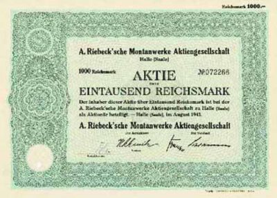 Der Höchstkurs stieg auf 117 RM, sank aber später auf 70 RM. Um die
